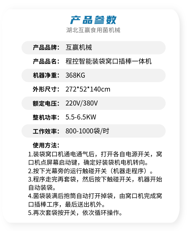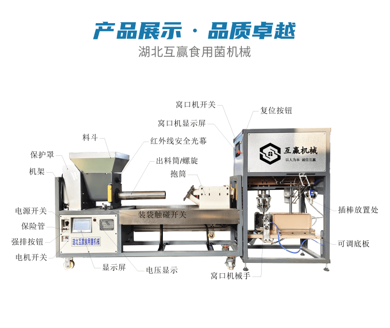 食用菌程控智能裝袋窩口插棒一體機(jī)